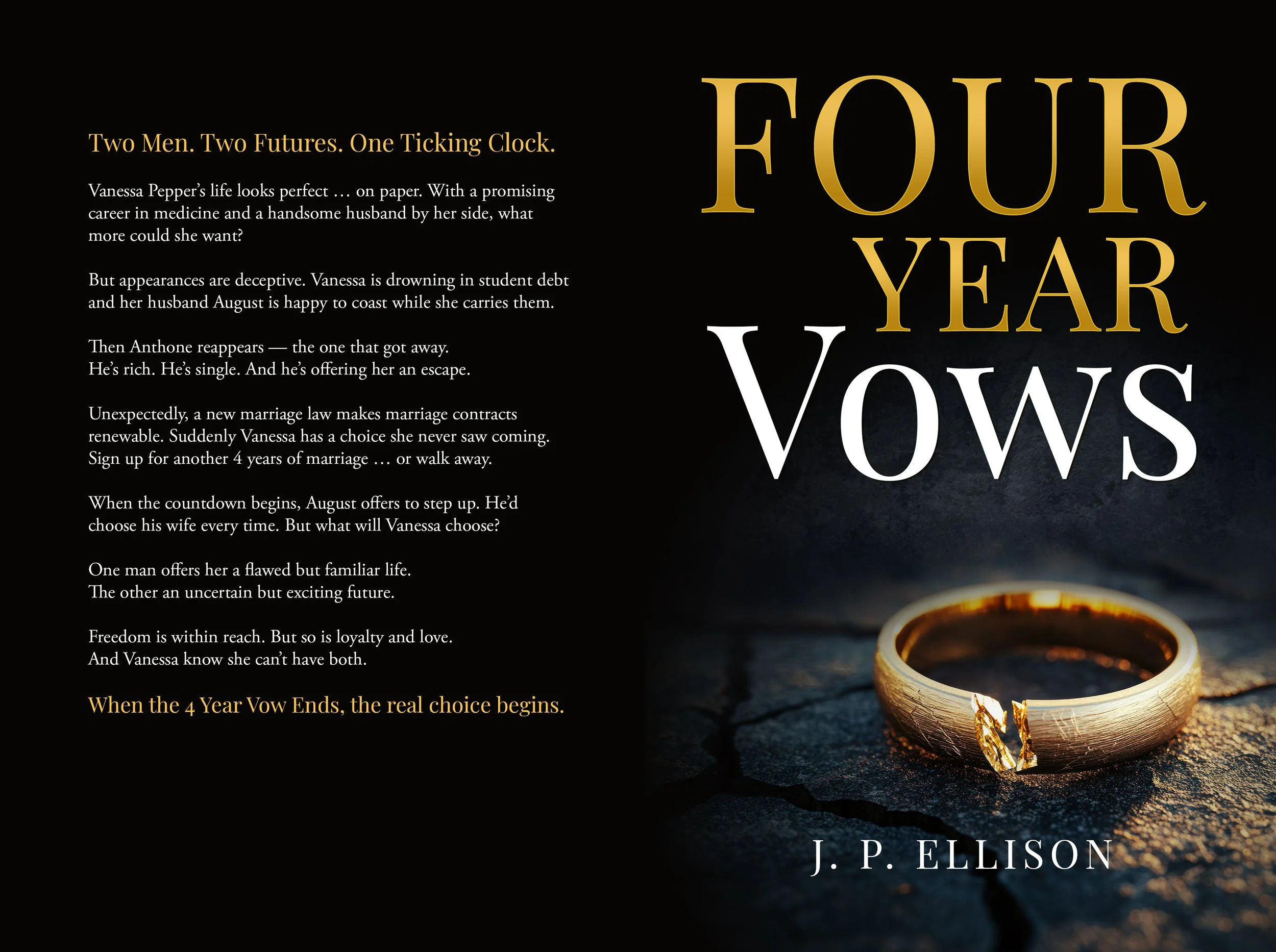 I’m J.P. ELLISON, an author who writes character-driven fiction where love, power, and technology collide. My stories dive into the moral choices people face when society shifts around them whether it’s a sleepless world reshaped by invention or a marriage tested by laws that redefine commitment. At the heart of it all are ordinary people making extraordinary decisions.